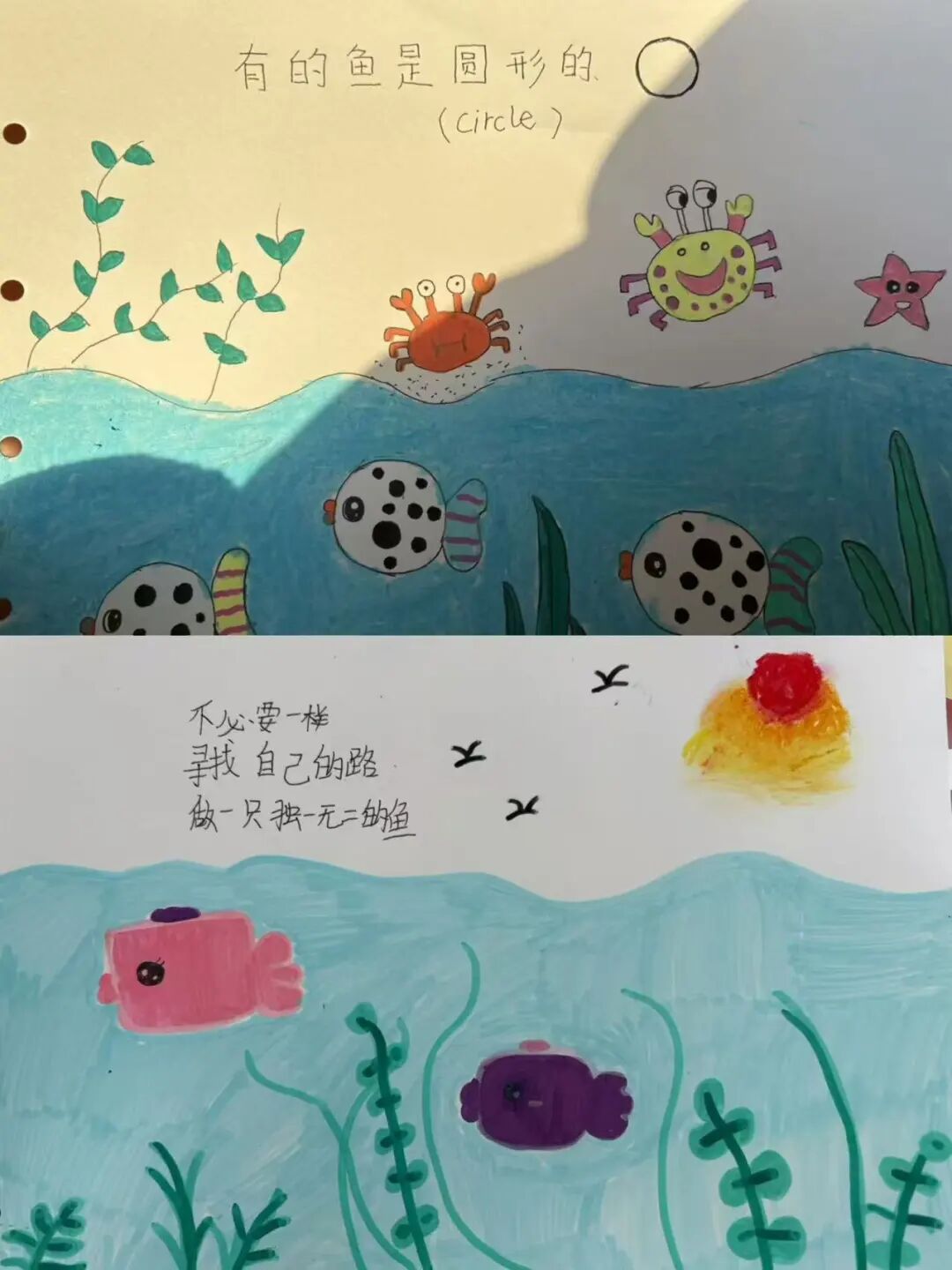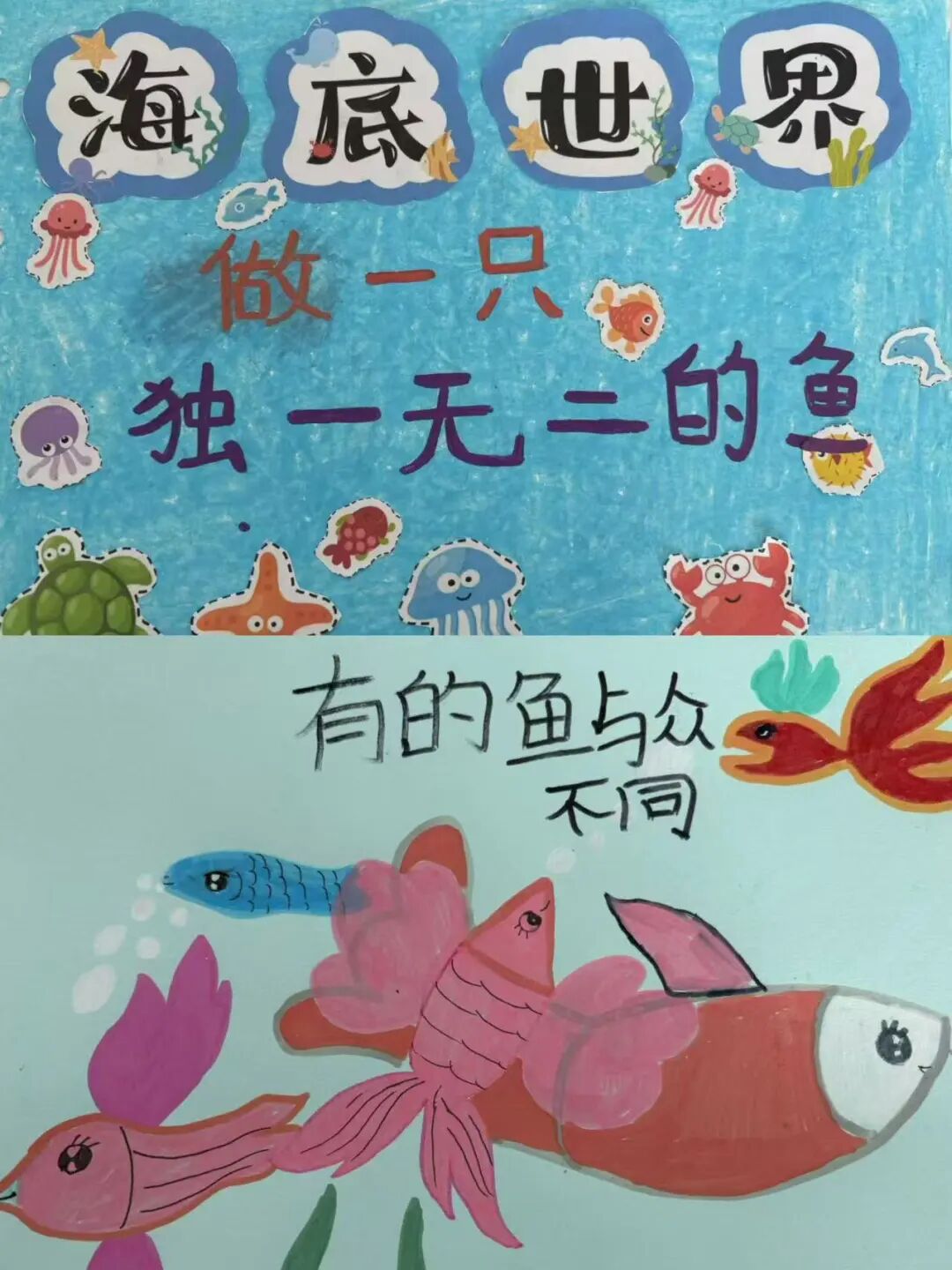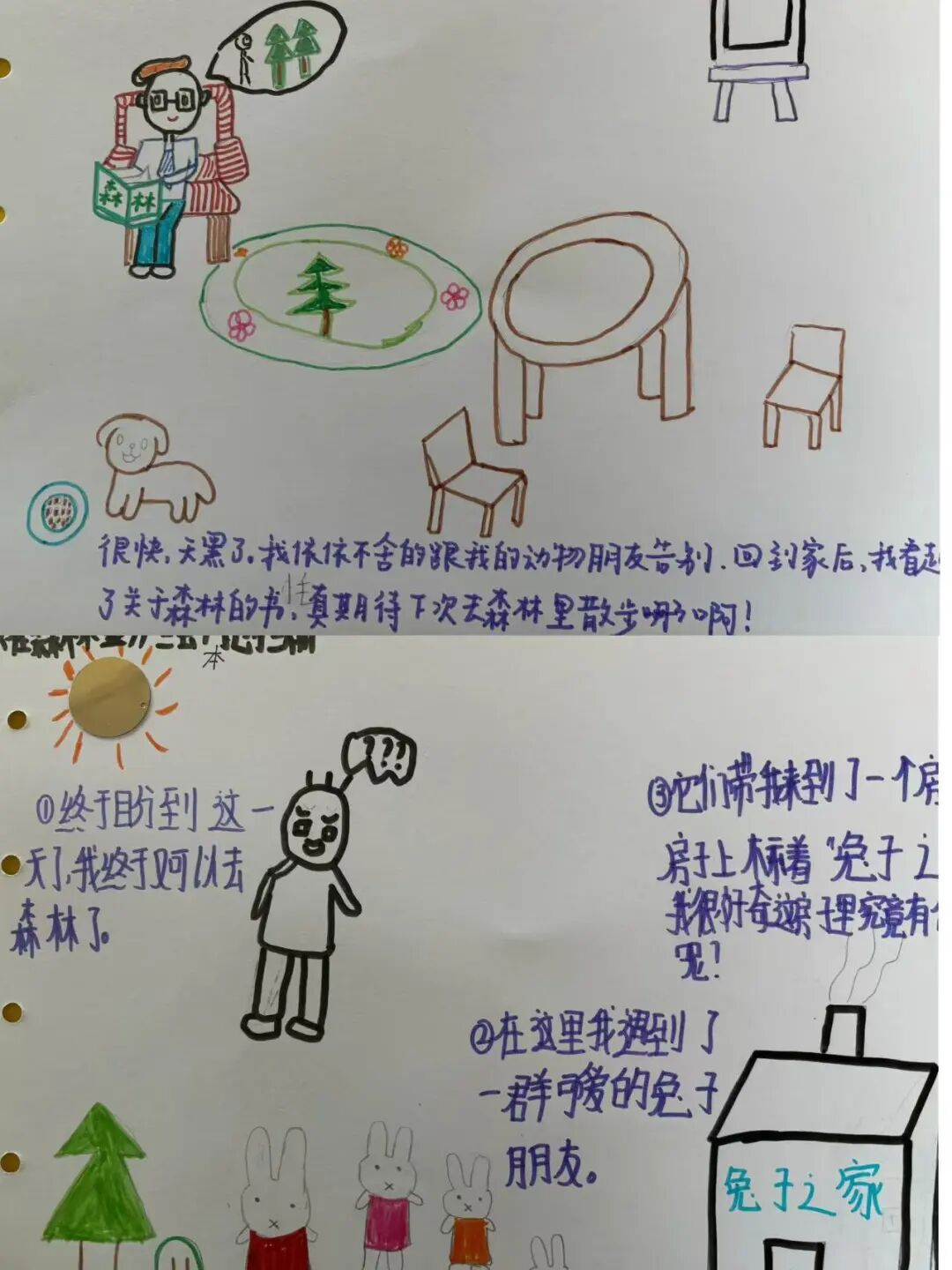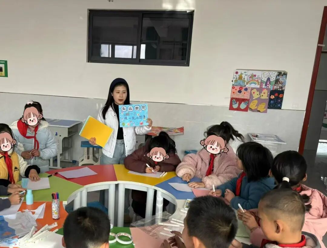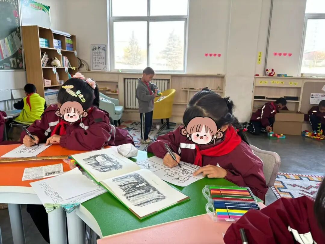 为了更深入的探索阅读能力提升活动的广阔天地,社工在引导阅读、小组阅读、角色扮演等基础上融入绘本创编这一形式,让孩子们不再仅仅是书籍的被动接受者,而是成为了故事的编织者、画面的创造者,为孩子们的阅读之旅开启了一扇充满无限想象与创意的大门。 绘本《做一只独一无二的鱼》,社工引导学生观察不同鱼类的特征,设计小蓝鳍及其朋友们的形象,强调每个角色的独特性。分步骤教授如何绘制海底世界,包括珊瑚礁、海藻、气泡等元素,鼓励学生发挥想象,添加自己想象中的奇妙景象。鼓励学生使用丰富的色彩,模仿海底世界的绚烂。孩子们独立完成自己的绘本页面,社工巡回指导。通过团队合作和分享,增强社交技能和团队协作能力。加深对海洋生物多样性的认识,培养爱护自然环境的意识。 绘本《在森林里》。社工准备A4纸、彩笔若干等,引导学生了解绘本的基本结构、语言风格和表达方式,继续围绕“森林冒险”这一主题,展现小男孩与森林动物的奇幻互动,在原作的基础上,增加新的故事情节和角色,根据改编后的故事内容,进行绘画创作,绘制出与故事情节相匹配的插图。学生在《在森林里》绘本创编的过程中也学会如何面对困难、如何与他人合作,实现自我成长。 在创作过程中,大家也遇到了无数挑战,从如何精准捕捉角色的情感变化,到如何通过色彩与构图营造氛围,每一步都考验着学生的创造力与耐心。但正是这些挑战,让学生能够不断突破自我。展望未来,期待学生能够探索更多元的绘本创作,用爱与创意点亮学校的生活,让绘本成为连接心灵的美丽纽带。
