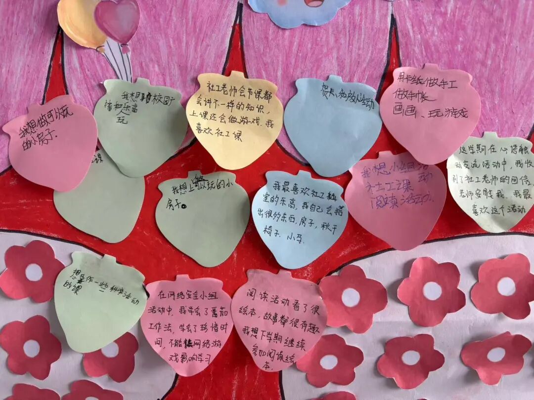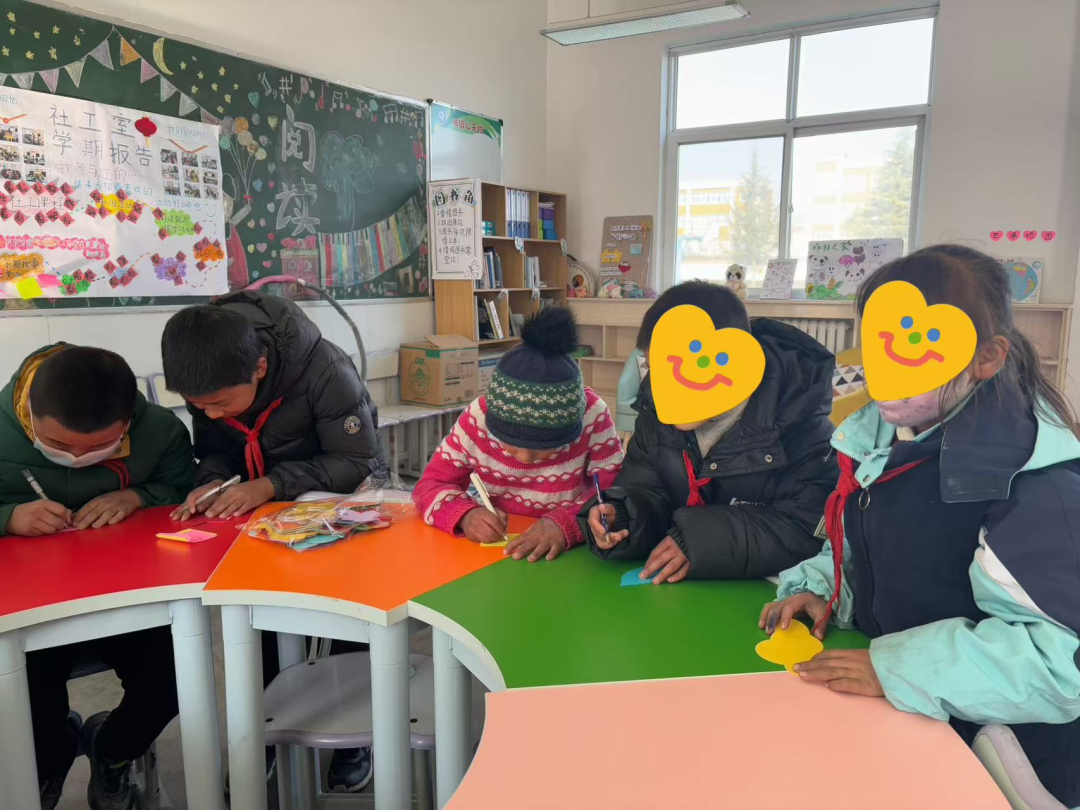 经过社工简单的回顾以及讲解后,学生们踊跃上前在自己参与过的活动下面贴上“新年福字”和“小红花”,并写下下学期想继续参加的活动。在分享环节,学生们纷纷表达了对本学期社工活动的深刻感受。有的学生提到,通过参与社工课程,他们学会了如何更好地管理情绪,提高了人际交往能力;有的学生则表示,小组活动和校园广播让他们感受到了团队合作的力量,收获了珍贵的友谊;还有的学生对个案辅导表示感激,认为它帮助他们解决了内心的困惑,找到了成长的方向。对于下学期的期待,学生们同样满怀热情。有的学生希望继续参与乐高创意工坊,探索更多创意的可能性;有的同学则期待在心语触动交流活动中,与更多同学分享彼此的故事,加深相互的理解与共鸣;还有的同学表示,他们希望下学期能有更多机会参与个案辅导,获得更加个性化的成长支持。