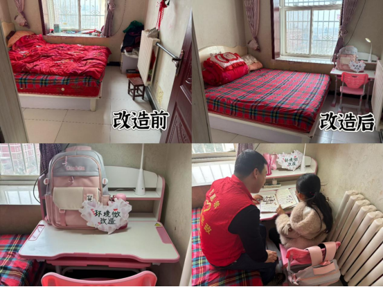 环境微改造并非简单的物质堆砌,而是根据每户学生的个性化需求进行精心设计。我们主要将改造内容划分为学习类和生活家居类两大板块。在学习方面,我们为孩子们配备了崭新的学习课桌、丰富的学习用品和书籍,让他们能够在更加优雅的环境中遨游知识的海洋。在生活家居方面,我们则优化了居住环境,如更换舒适的床品、增设衣物收纳设施等,让孩子们的日常生活更加便捷和有序。
